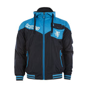 Eine leichte gewebte zweifarbige Windjacke mit Lion Rampant- und Schottland-Aufdruck. Mit Kapuze mit Kordelzug, Reißverschluss vorne, schrägen Reißverschlusstaschen vorne, langen Ärmeln mit Bombermanschetten und einem teilweise elastischen Saum. Stilvolle Jacke für den Alltag.