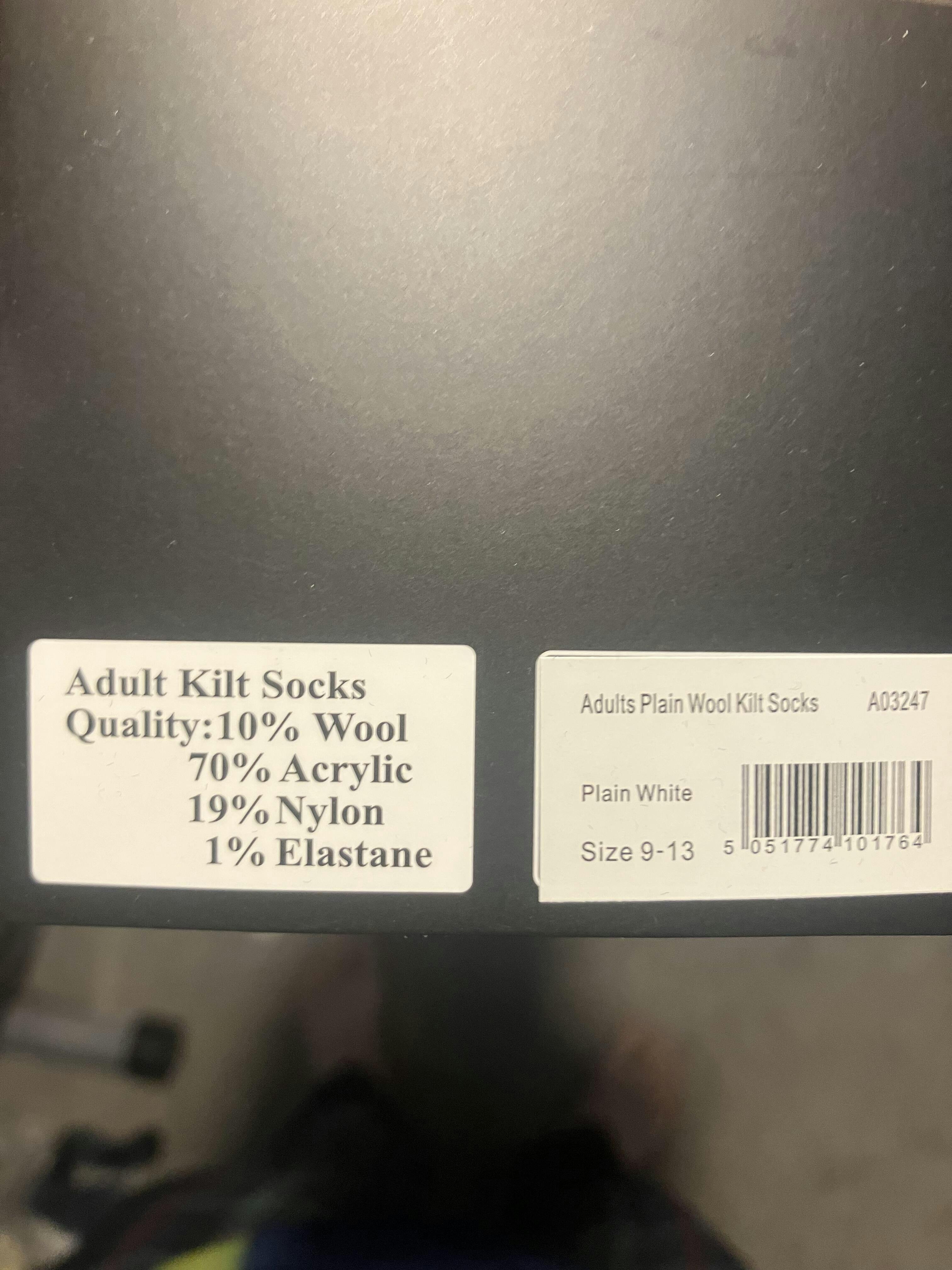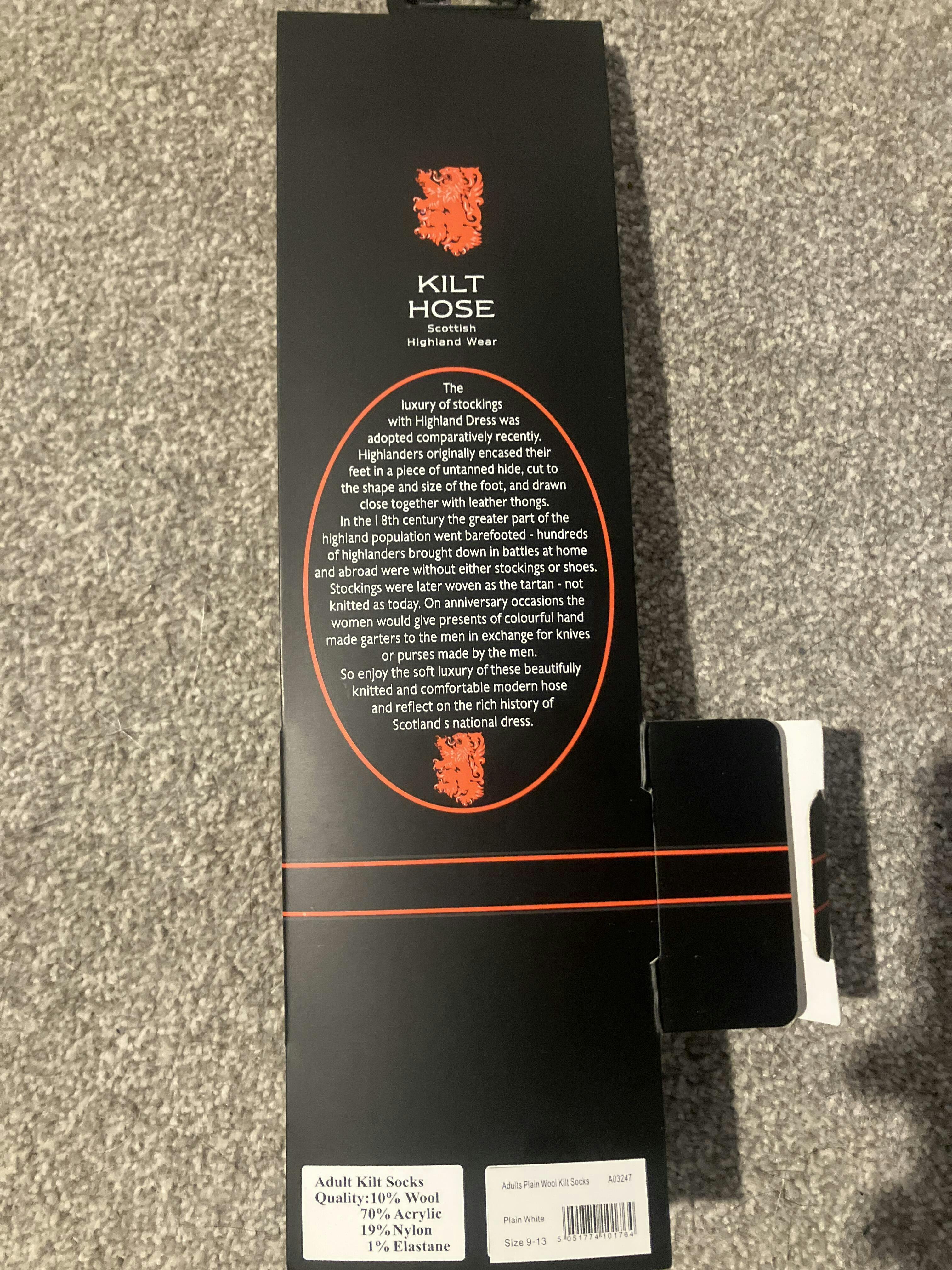 Wool Blend Kilt Hose A superior quality, machine-washable, 10% wool blend kilt hose that will stay looking great. Comfortable and suitable to wear with any kilt outfit, choose from our range of classic colours and designs to match, complement or contrast with your kilt. Available in two sizes to ensure a perfect fit: Men's UK 6-9 (Euro 39-43/US 7-10) Men's UK 9-13 (Euro 43-48/US 10-14)