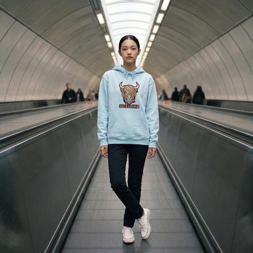 Bring a playful Scottish touch to your casual wardrobe with the Scotland Pastel Highland Cow Hooded Top - Navy. Made from soft, comfortable fabric,...
