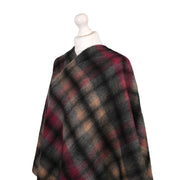 Add effortless style to your wardrobe with this chic tartan poncho in deep shades of black, charcoal, burgundy, and camel. Crafted from a soft wool blend, this versatile wrap is perfect for layering on cool autumn days or keeping cosy through winter. With its classic fringed hem and flowing drape, it can be styled as a poncho, shawl, or cape – making it a timeless accessory for any outfit.